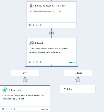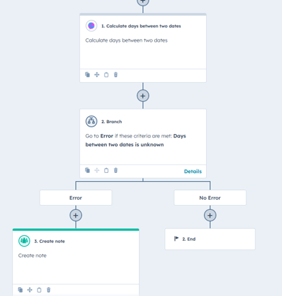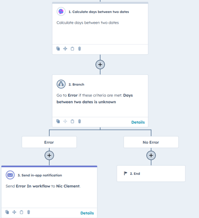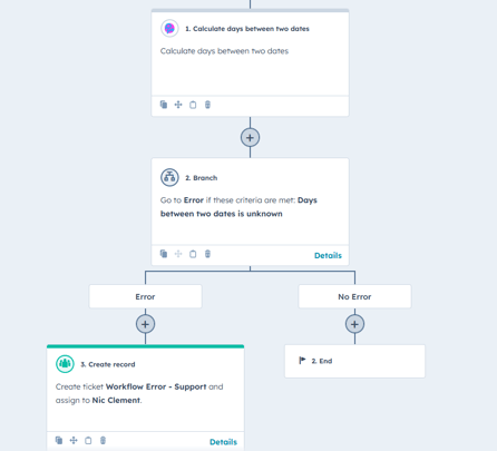 When creating workflows with custom actions that do integrations, use a branch to divert errors in their own branch that can be used to create one or a combination of: