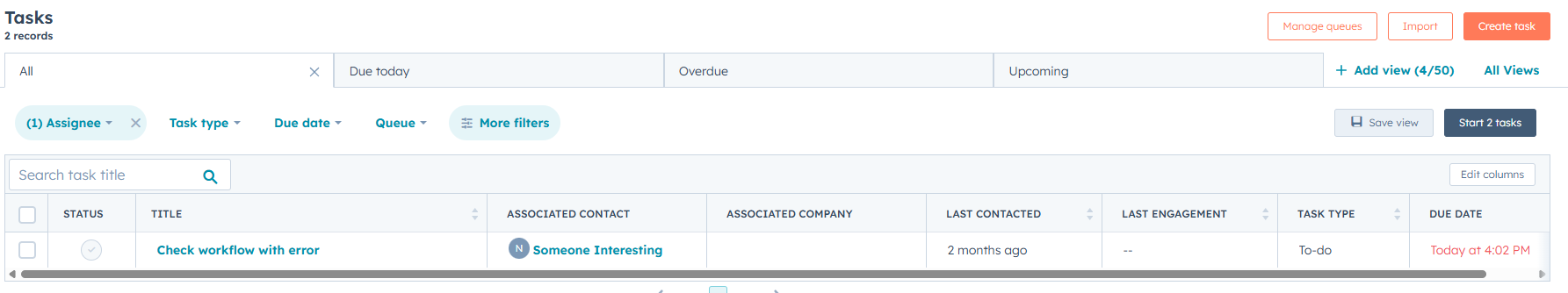 4. Create a task on the object that was enrolled and assign it to the owner for review and with error details or add to a specific task queue